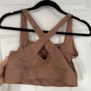 NWT Women’s All in Motion Taupe Square Neck Cross Back Sports Bra Medium Support