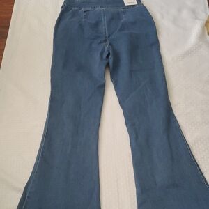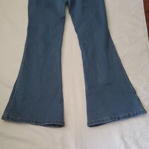 These blue jeans from Forever 21 feature a stylish flare and wide leg design, offering a modern twist on a classic look. Crafted from durable denim, they provide both comfort and a fashionable silhouette for any occasion.