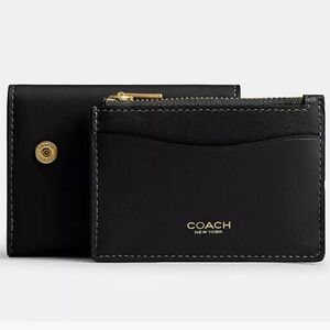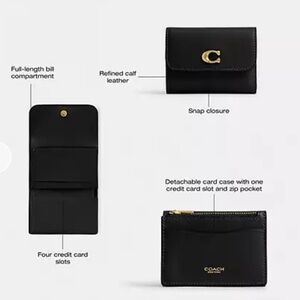 A compact design with optimal organization, this card holder wallet easily fits into a wristlet or crossbody bag. Crafted of refined leather detailed with our Signature hardware, the petite design has four card slots and space to keep bills neatly tucked away. It’s finished with a convenient snap-off card case featuring a hero card slot and expandable zip pocket to use on its own when traveling light.