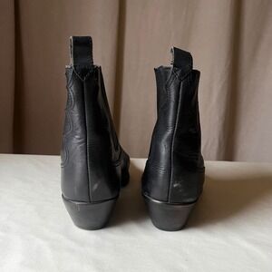Feather & Son western boots, black leather cowboy boots women, vintage ankle boots size 10, pull on western boots, low heel cowboy boots, 90s western footwear, pointed toe leather boots