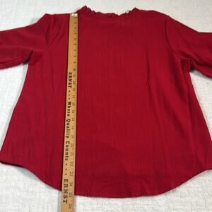 New! Komili romantic red embroidered ruffle neck puff sleeves feminine top L