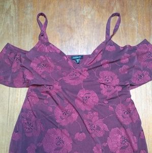 New without tags Le Chateau size large cold shoulder bodycon mini dress or tunic shirt, purple floral pattern. Fully lined. Never worn. Price tag is missing but the plastic tag is still there.