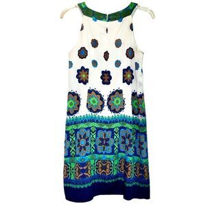 London Times Sleeveless Medallion Shift Dress in Blues/Greens/White Women’s 4
