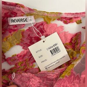 Chic and feminine floral mini dress by Reverse. Features intricate pink and yellow lace. Perfect for a touch of elegance. New With Tags size 12