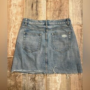 Stylish denim skirt with a trendy distressed look. Perfect for casual outings. Condition is like new.