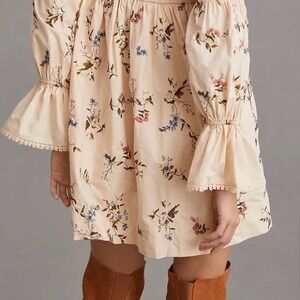 Anthropologie embroidered long sleeve mini floral peasant baby doll dress XS