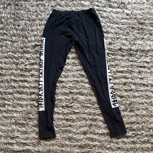 Stylish and versatile black leggings featuring a side print. Perfect for everyday wear and active lifestyles.