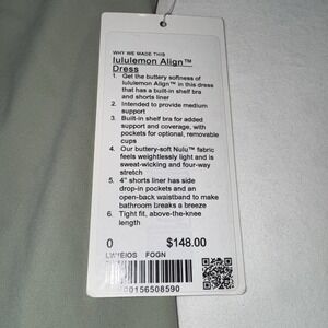 Lululemon Size 0 Align Dress Fog Green Built-In Bra Tight Nulu Stretch $148 NWT