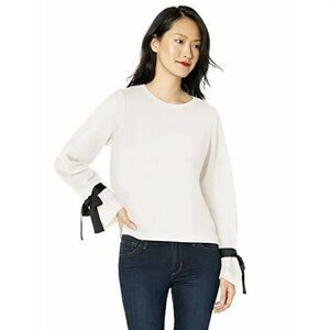 BNWT J.Crew Mercantile Top With Black Ribbon Bow Sleeve White - Size Large