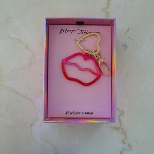This Betsey Johnson bag charm/keychain features textured pink and red colored lips outline charm.