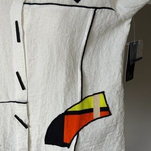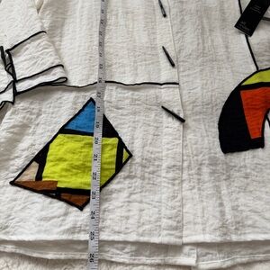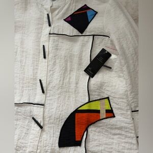 Ali Miles Pop Art Patchwork White/Cream Tunic Shirt with Abstract Accents-XS(S/M