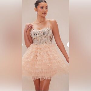 NWT and SOLD OUT- Feel like a chic ballerina or princess in this sparkling sequin mini dress with a fluffy and full multi- layered tulle skirt. Excellent quality, easily looks like it came from a designer’s studio. NO STRETCH