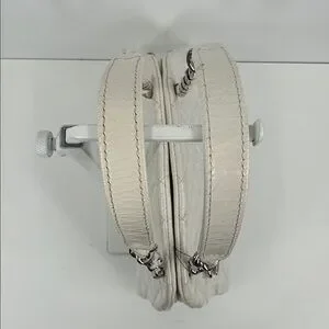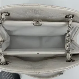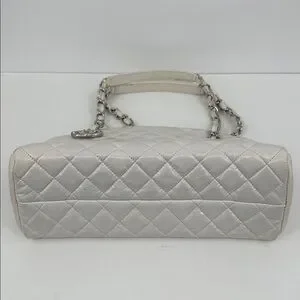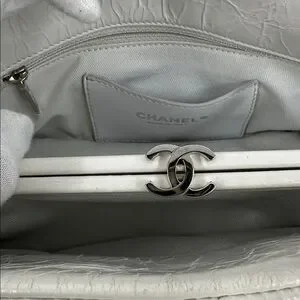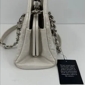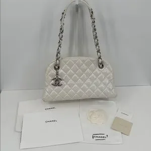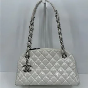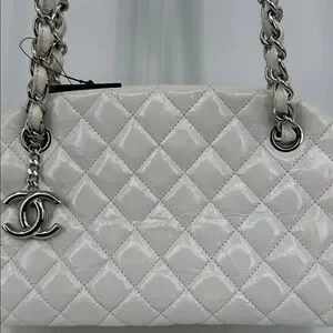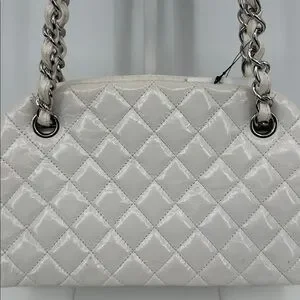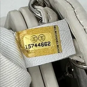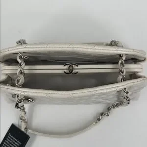Authenticated CHANEL Mademoiselle Shoulder Chain Bag- White/Silver