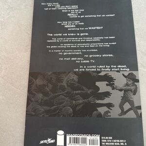 The Walking Dead Volume 9: Here We Remain graphic novel. Features a striking black and white cover with bold text.
