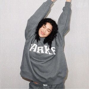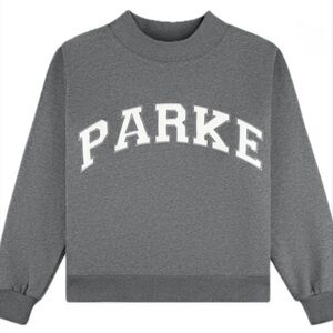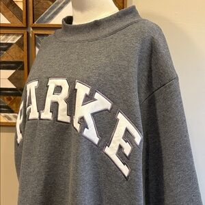 PARKE Varsity Fleece Mockneck Sweatshirt in Stormy Grey + White size L/XL EUC