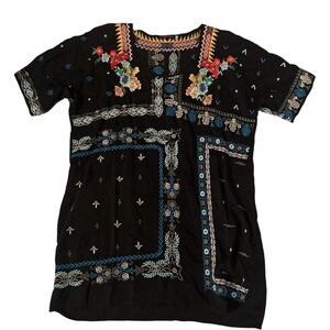 Johnny Was black floral geometric embroidered flowy tunic size medium