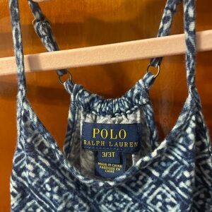 Classic and stylish Polo Ralph Lauren indigo-dyed romper for a toddler, featuring a unique geometric print that adds a modern touch to a timeless look.