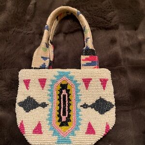 America & Beyond Beaded Artistic Handbag with white and multicolor patterns.