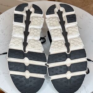 Stylish black athletic shoes with white soles. Perfect for running and everyday use. Comfortable and lightweight. Only worn to school, not running. Let me know if you have questions. See pics for details of the shoe. I do not have the box.
