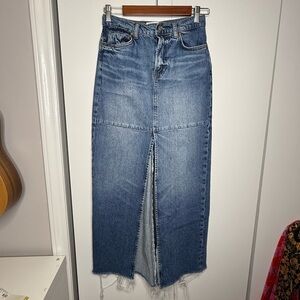 Reformation Tazz Maxi Denim Skirt with Slit - Size 24
