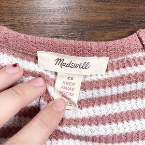 Madewell • Waffle Knit Pajama set top pants Lorain Stripe pink cream knit pjs