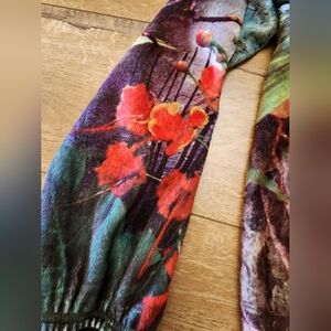 The RARE Alberto Makali VELVET Haunted Castle Hoodie is a unique and artsy bomber jacket featuring a landscape pattern with poppies and a castle design, perfect for those who appreciate nature, mysticism, and gothic aesthetics. Made from polyester with a full lining, this jacket offers a relaxed fit and is adorned with contrast trim accents. Ideal for various occasions including travel, parties, casual outings, and business meetings, this multicolor jacket with a hood and button closure is a standout piece in any wardrobe.