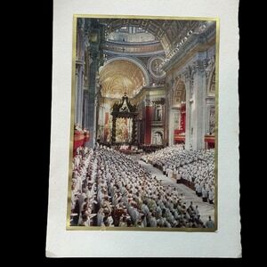 * For sale is a 1960s era unused Christmas greeting card by Wilkinson Publishing Company. This card is made of cardstock and on the front it features a photograph of the 21st Ecumenical Council in St. Peters, Rome.