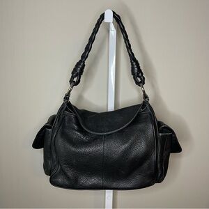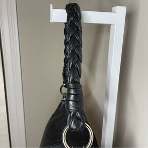 Lauren Ralph Lauren Black Leather Shoulder Bag Braided Strap Hobo Purse