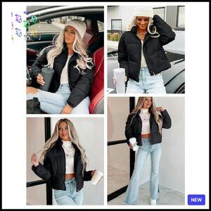 Brand new, never worn, and in flawless condition — this chic cropped quilted puffer jacket offers a stylish and warm layer perfect for winter casual wear, holiday outfits, or elevating your everyday look. The slim silhouette is flattering, cozy, and designed for easy layering.