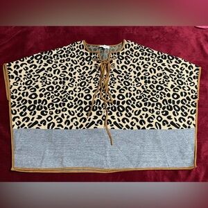 NWOT Anthropologie THML Leopard Print Knit Poncho Sweater Cape Boho Indie Size S