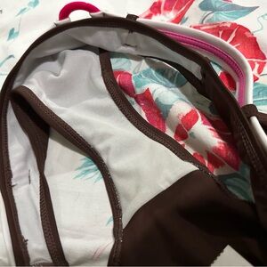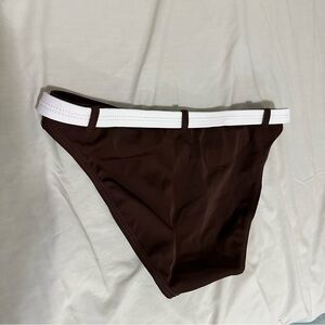 Chic brown bikini bottom with belt loops for stylish pink and white waist belt