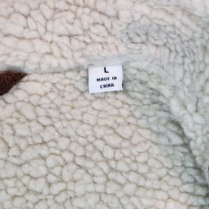 Faux-leather shell: polyester/polyurethane; collar trim and body lining: polyester/acrylic sherpa fleece