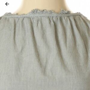 Navy and ivory mini striped all cotton halter with tie front and ruffle neckline . Easy breezy summer top in good condition.