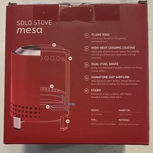 Solo Stove Mesa tabletop fire pit, mulberry color. Easy to use and low smoke, perfect for any outdoor gathering. New, never opened, never used!