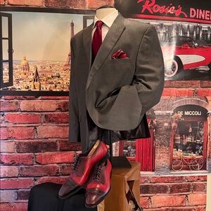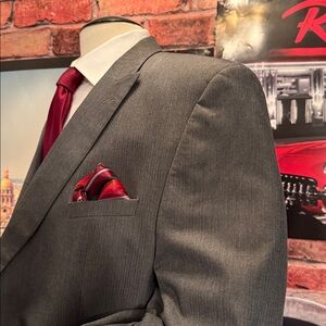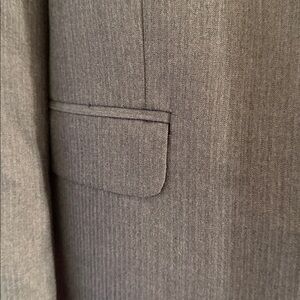 Stylish Joseph Abboud Sport Coat size 50 Regular medium gray herringbone pattern it’s polyester and Viscose lightweight all year round New without tag . Fully lined peak lapel flap pockets 2 buttons front and Side vents . Ideal for sophisticated events.for business or formal. Armpit 26 , sleeves length 25. Coat length 31, shoulder 21.5 accessories and shoes Not included only the Sport Coat, Men’s Wearhouse price $ 399
