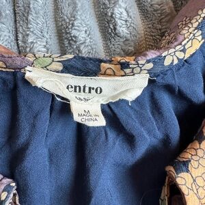 Entry boho Floral Daisy Blue Purple Popover Peasant Blouse Top