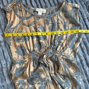 Excellent condition except for partially damaged brand tag. A top with a sophisticated boho vibe. Raw edge seems. Delicate grey sheer fabric with burnout gold detail pattern. SZ 0. Please confirm measurements approximate laying flat in pictures as Poshmark does not accept returns for fit issues. Please scroll to see all seven photos provided.