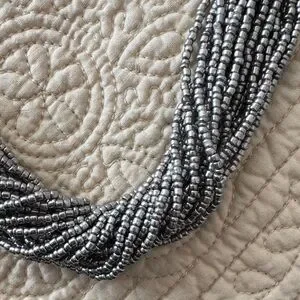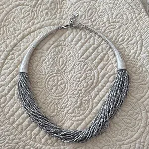 Chic multi-strand necklace with silver beads. Perfect for any occasion.