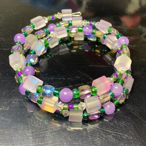 Purple Beaded Fibromyalgia Awareness Coil Bracelet