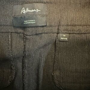 These are classic black pants from Reitmans, designed in a petite size 14 pull up. They feature a straight-leg cut and are ideal for both casual and formal settings.