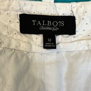 Talbots White Eyelet Shorts Size 12 Mid Rise Flat Front 5" Inseam