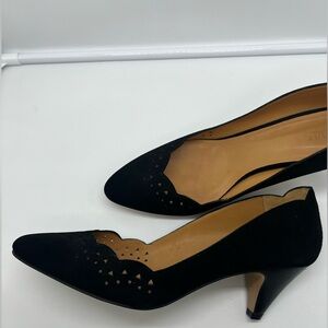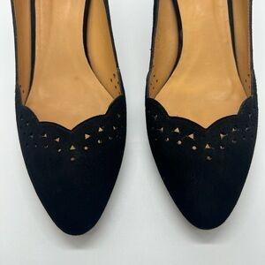 SÉZANE Escarpins Low Josephine Black Suede Eyelet Cutout Kitten Heels sz 42
