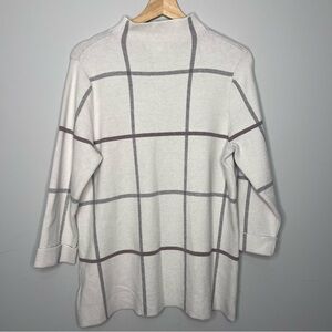 Tahari Cream & Grey Windowpane Mock Neck Sweater (Large)