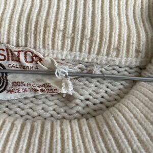 Vintage SILTON CALIFORNIA Cream Cable Knit Reindeer Fair Isle Sweater Pullover