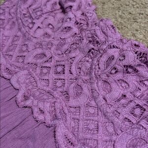 Lace overlay at front bodice; ruffled hem