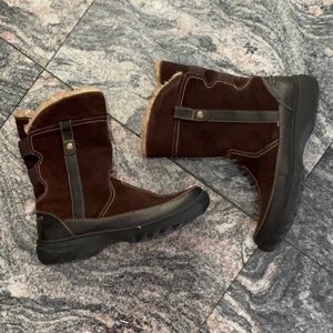 Clarks Boots Winter Leather Suede Women’s Size 9.5 Medium Brown Comfort Warm