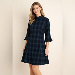 Lumiere Flare Sleeve Buffalo Plaid Mock Neck Mini Dress Women L Green