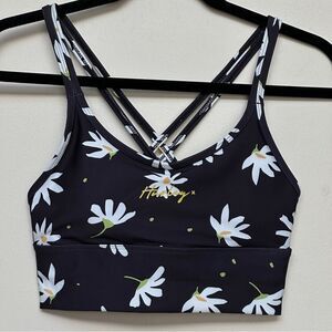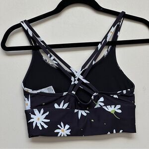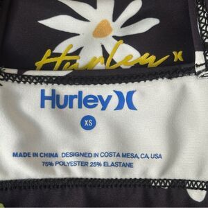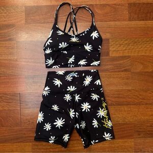 Hurley 2 Piece Black Big Daisy Floral Double Cross Sports Bra Short Set Size XS