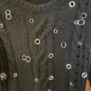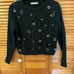 Great black chunky cropped sweater by Zara with a round neck, slip over, with an edgy feel with adorned silver circles on the front.