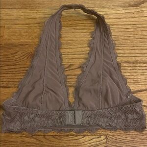 Comfortable and stylish Free People brown lace halter bralette (not the same color as model pic). Perfect for any occasion, it offers a flattering fit and delicate lace detailing.